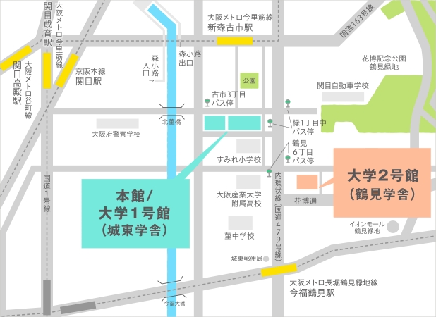 【看護学部】:大学2号館(鶴見学舎)大阪府大阪市鶴見区鶴見6-2-28